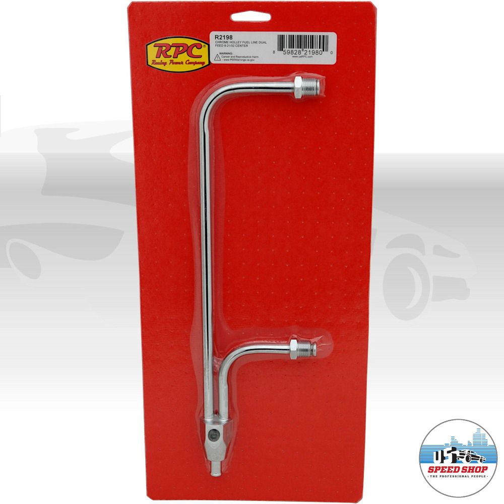 Diese verchromte Benzinleitung von der Racing Power Company versorgt Ihren Holley Vakuum-Vergaser auf stylische Art mit Kraftstoff. Sie ist hochwertig Verarbeitet und verfügt über einen 1/8"-NPT Anschluss zur Montage einer Kraftstoffdruckanzeige. Auf der Eingangsseite verfügt diese Kraftstoffleitung über ein 9,5mm (3/8") Schlauchanschluss, der Anschluss an die Schwimmerkammer Ihres 3310er erfolgt über zwei 15,875mm (5/8-18") Überwurfmuttern.
