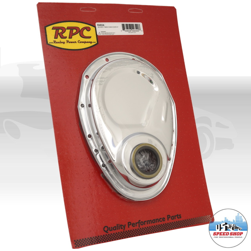 Racing Power Company verchromter Steuerkettendeckel - Für Chevy Small Block Motoren bis 1995.